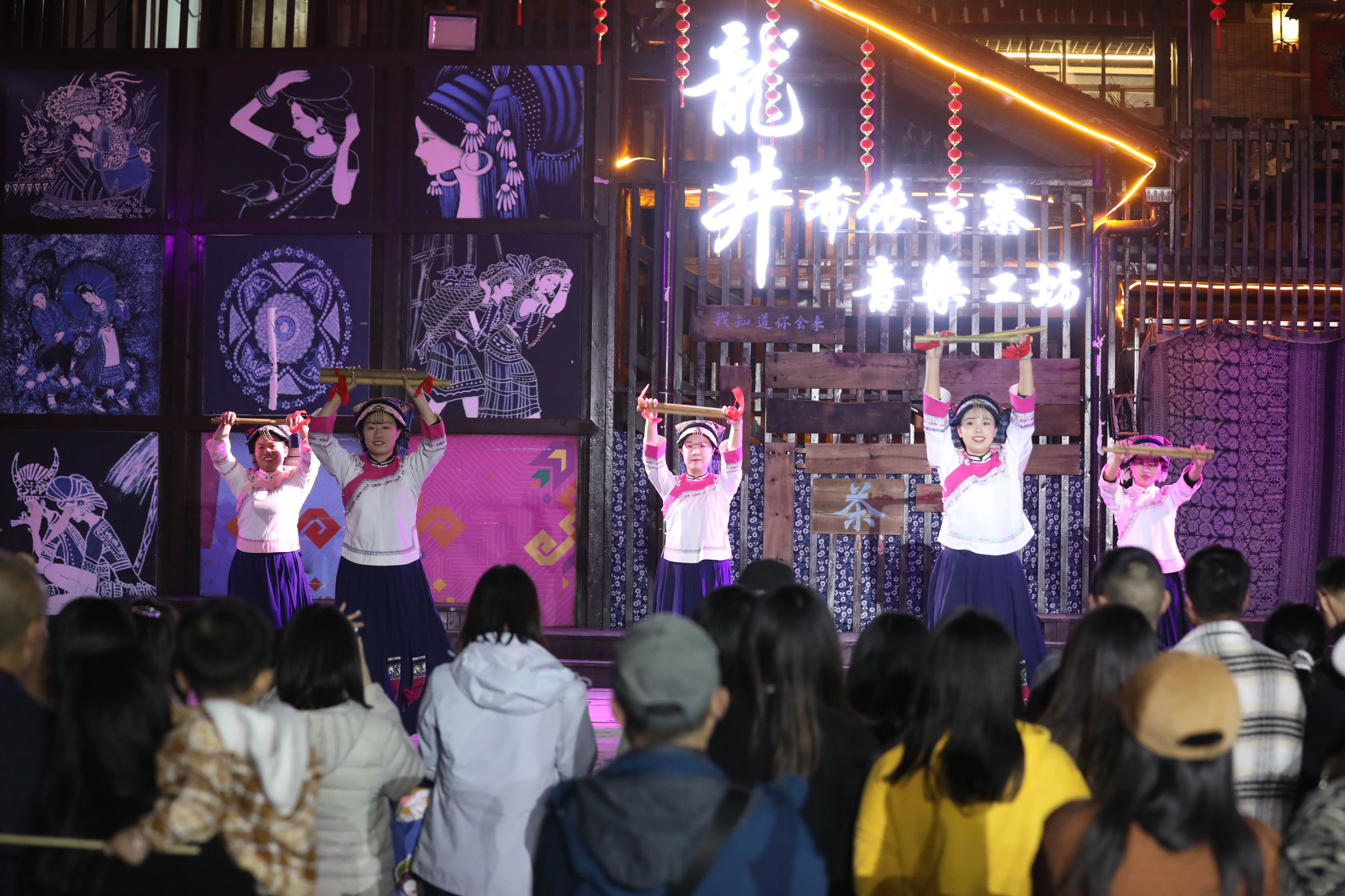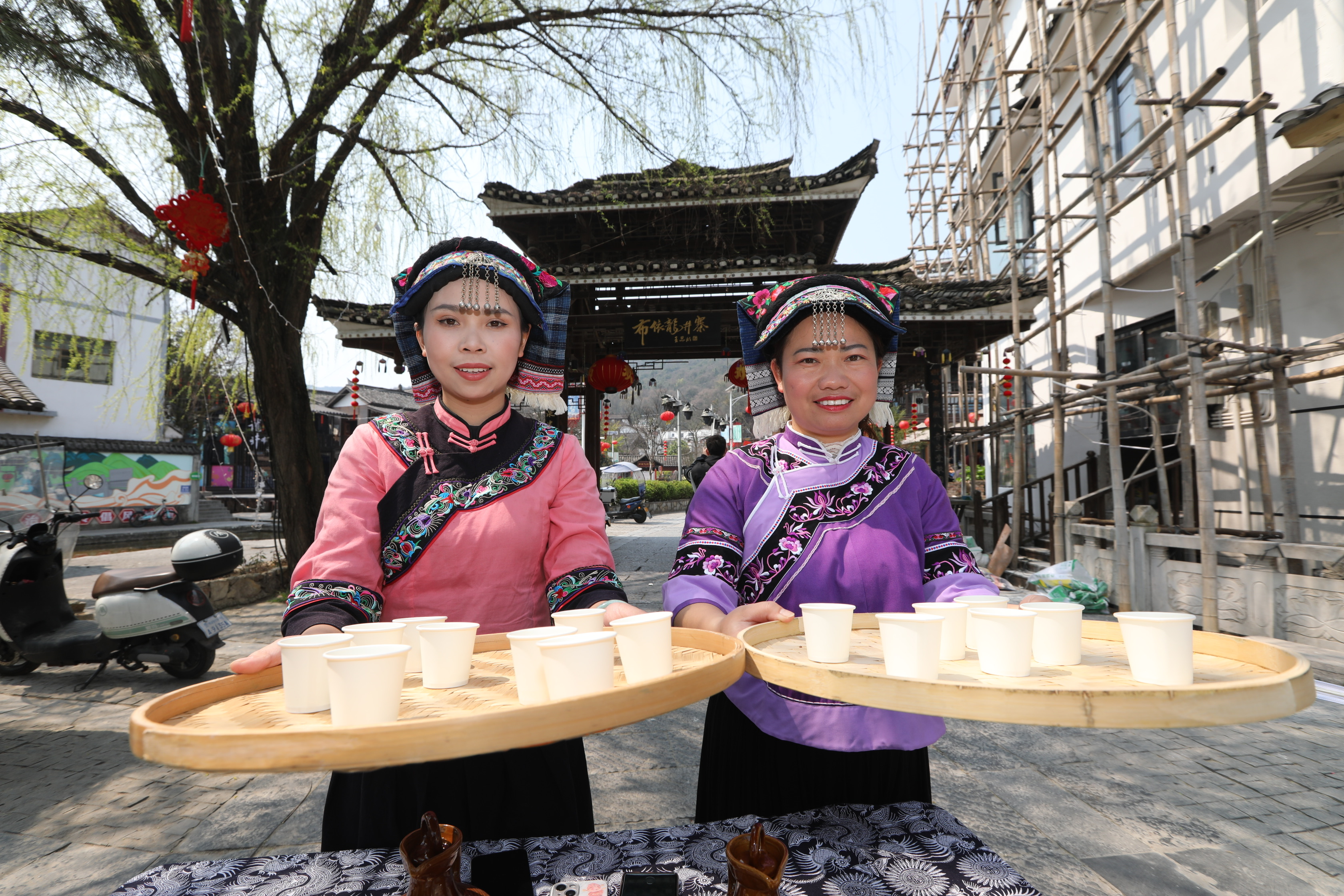 短短几年间,腊味坊、米酒坊、刺绣坊、水碾坊、织布坊、簸箕画(书法)馆、布依族文化生态博物馆等具有布依特色的文化坊一个个落地龙井,拦门酒、方桌宴、打糍粑、竹竿舞等布依活动,让游客流连忘返。2024年,龙井村、山王庙村等旅游重点村接待游客人数达60万人次以上。