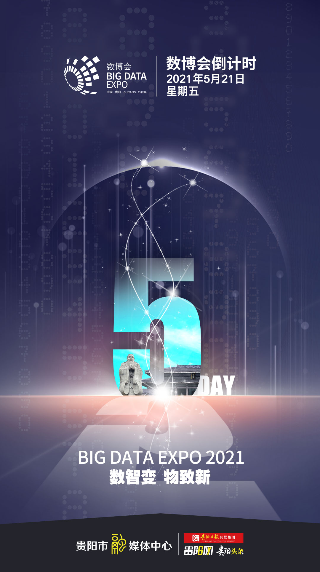 2021中国国际大数据产业博览会(简称“2021数博会”)将于5月26日至28日在贵阳举行,今日推出倒计时第5天海报。