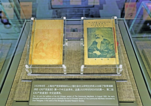 中共一大纪念馆展出的由陈望道翻译的《共产党宣言》第一个中文全译本。新华/传真