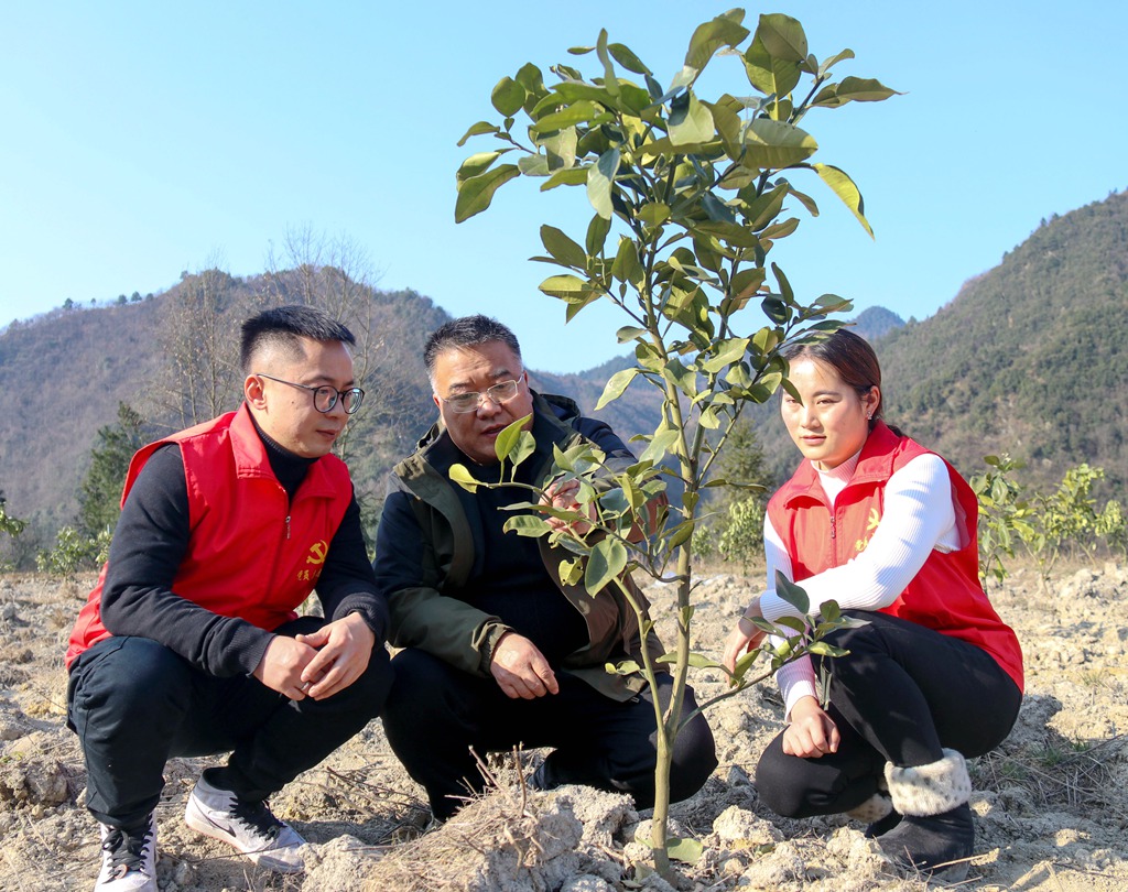 三穗县农技专家在台烈镇寨头村红宝石柚子基地传授防护知识。