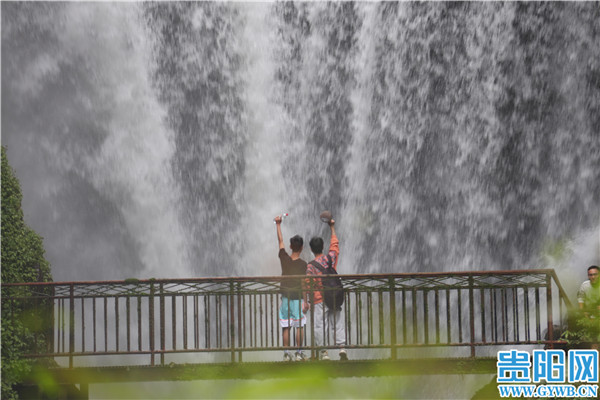 贵阳网·甲秀新闻讯 “飞流直下三千尺,疑是银河落九天。”在贵阳市开阳县,也有这样飞流直下的一道瀑布,那就是香火岩瀑布。在这里能看到,飞瀑悬空流下,水气蒙蒙,珠玑四溅,仿若置身银河。小桥上的人们笑着近距离感受瀑布带来的凉爽和震撼。