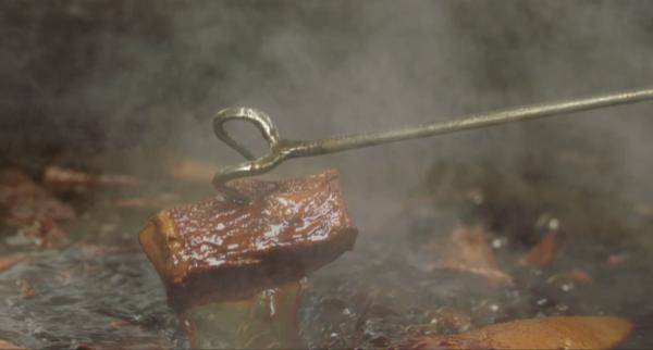 选用山奈、花椒、八角、桂皮、茴香、砂仁、草果等几十种香料和中药材按比例混合打碎成粉末状,称为“卤料”。然后将卤料装入纱布袋,用净锅加水、糖色和装满卤料的纱布袋,慢熬成卤汤。