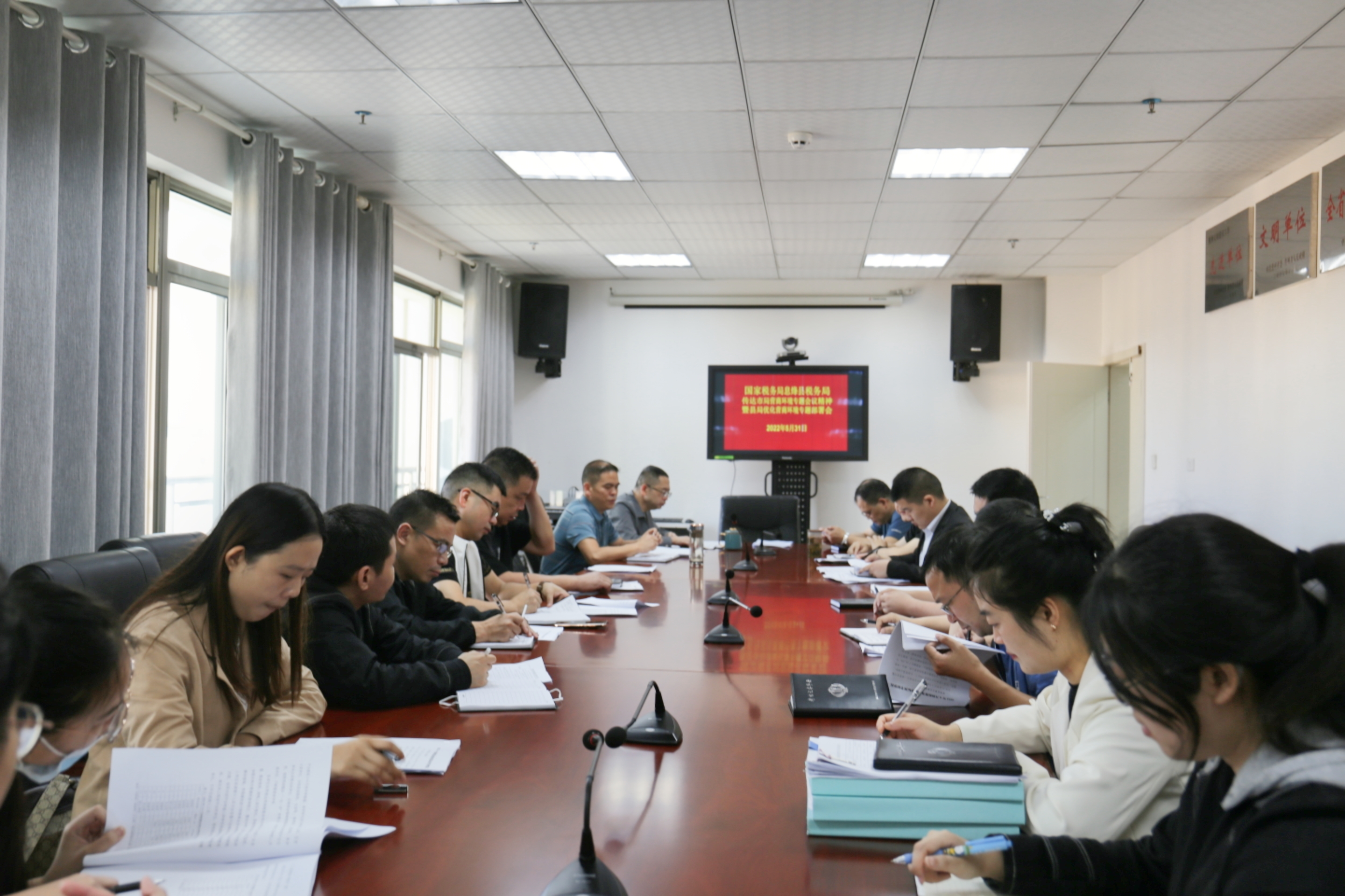 会议要求,各部门干部职工要切实提高思想认识,深入学习营商环境工作的重要指示精神,认清短板不足,找准优化提升的发力点和突破口,全面扎实把纳税服务工作落到实处,推进精确税务执法,确保政策直达快享。