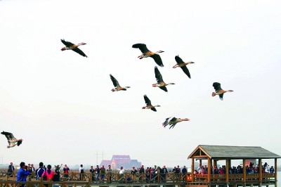 行走在这里,优美的景色和流连栖息的众多鸟儿,时刻吸引着游人的目光,让人情不自禁地按动相机快门。在这里,人们可以拍到难得一见的国家一级保护鸟类丹顶鹤、白头鹤、东方白鹳等。
