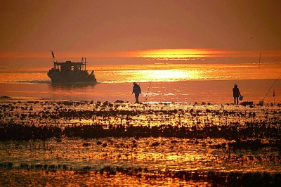 夕阳下的保护区滩涂。