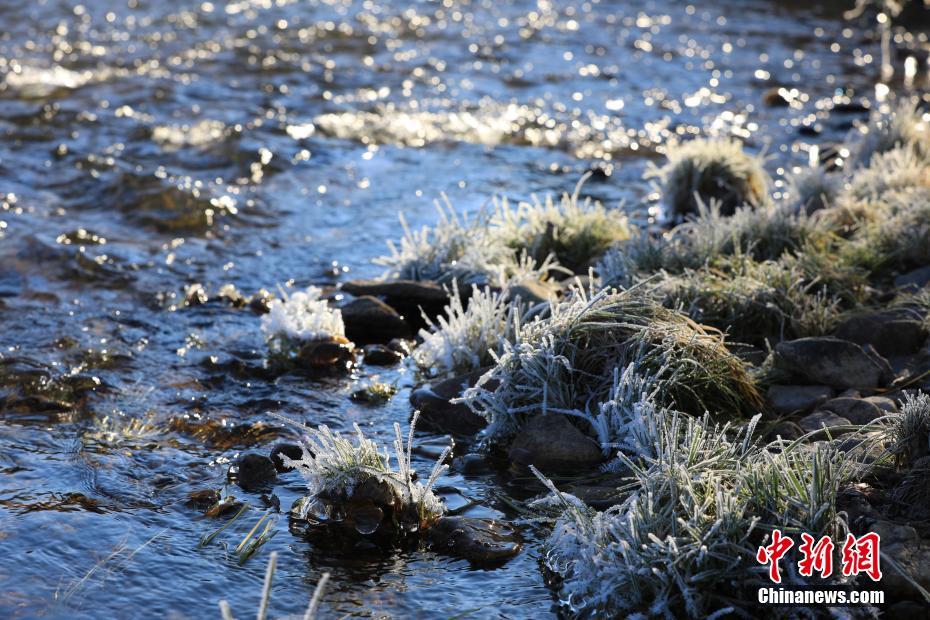 霜花、冰凌为晚秋的河畔增添了生趣。