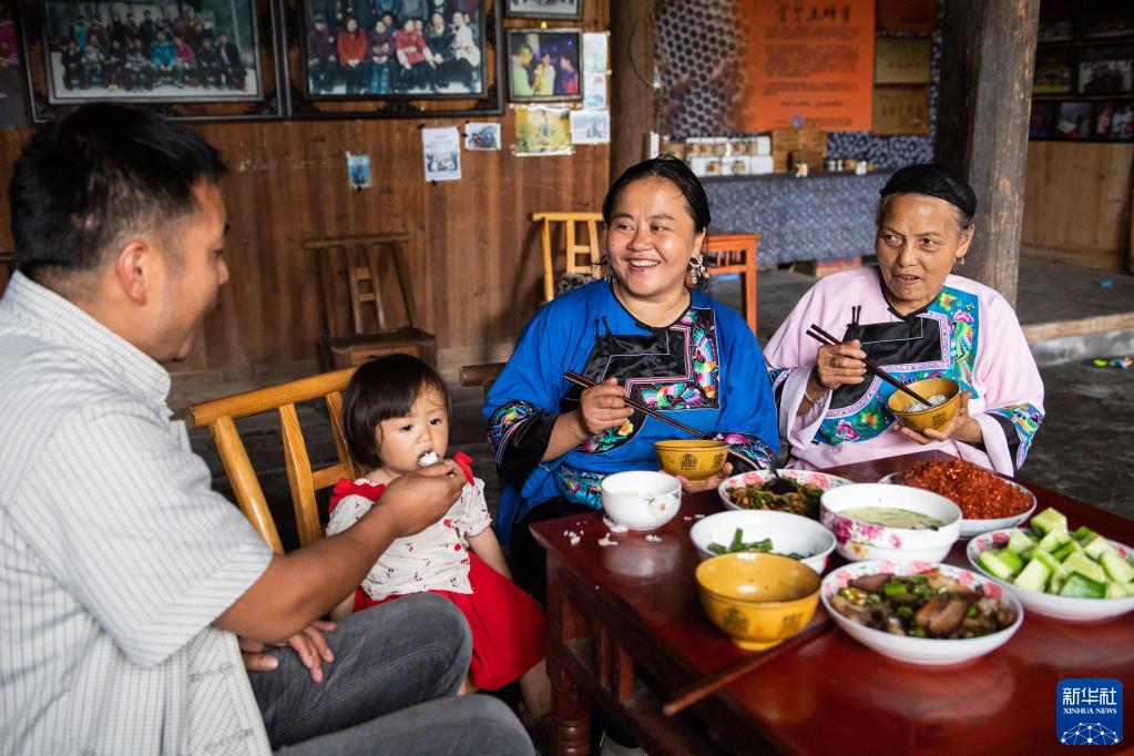 湖南省湘西土家族苗族自治州花垣县双龙镇十八洞村一户村民在吃午餐(2021年7月1日摄)。新华社记者陈思汗摄