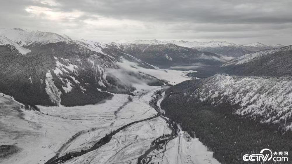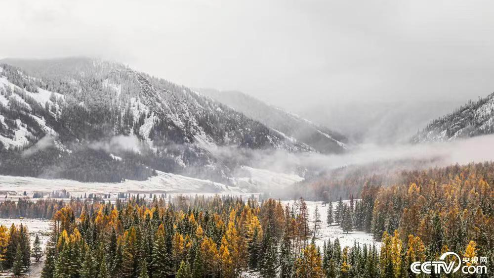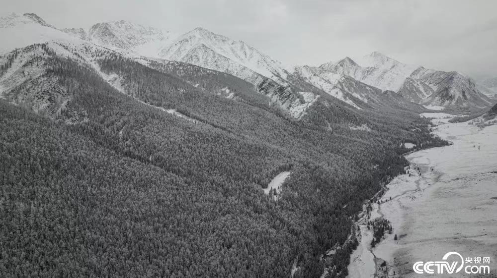 2022年10月18日,新疆阿勒泰地区普遍降雪,部分边境山区中到大雪。大雪过后的中蒙边境前沿,宛如一幅泼墨山水画。
