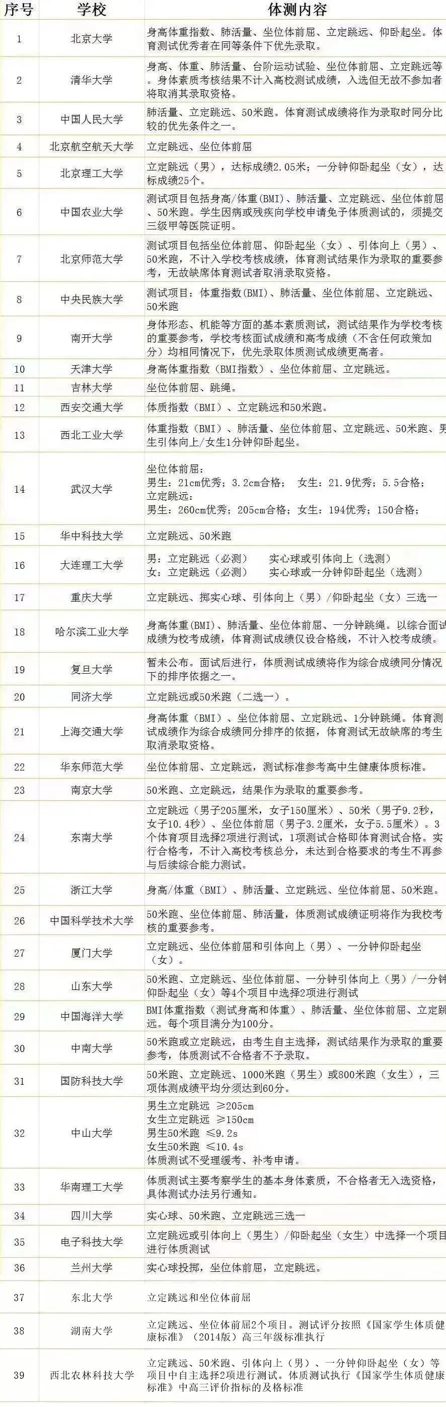 2.体育测试考核作为录取的重要参考,不同高校测试项目略有不同。