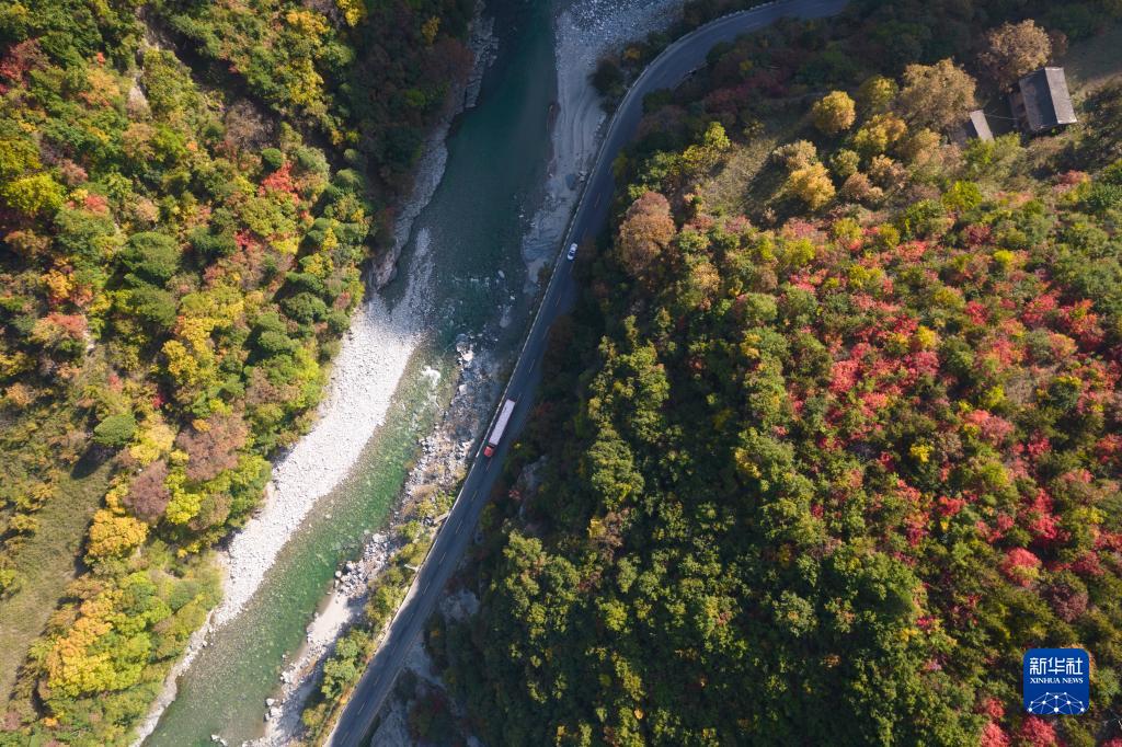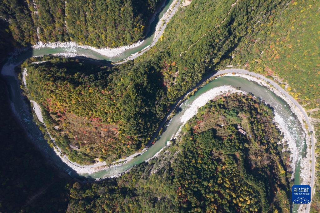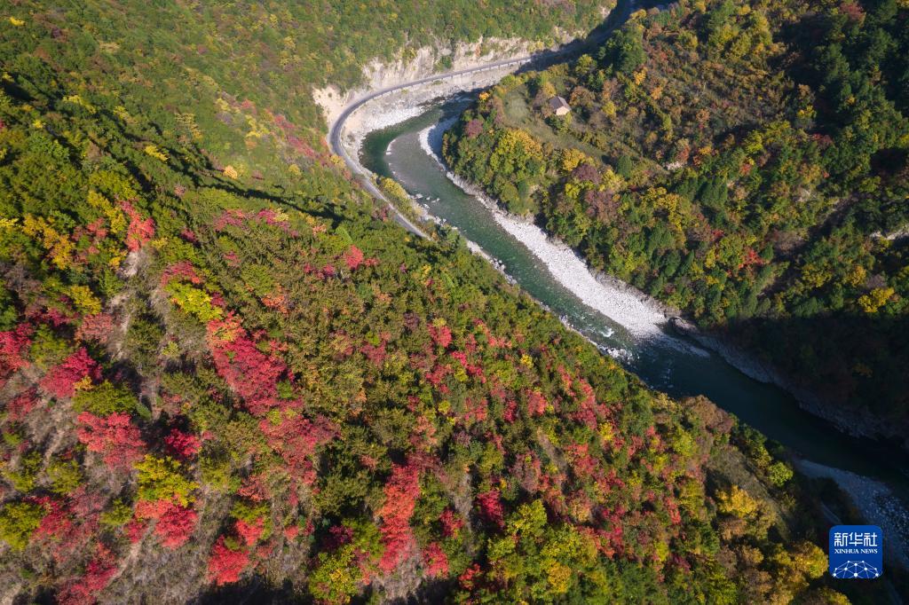 位于陕西周至县境内的秦岭景色(10月18日摄,无人机照片)。