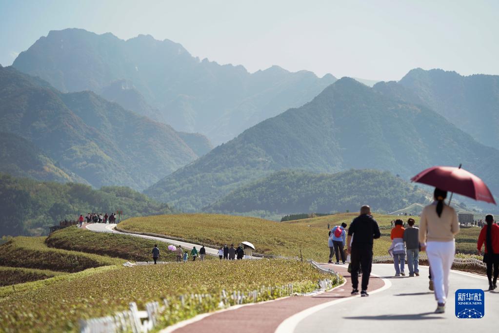 游人在秦岭北麓的陕西蓝田县九间房镇峪口村内游玩(10月16日摄)。