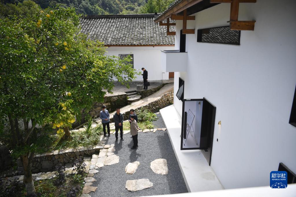 游客在位于秦岭南麓的陕西宁陕县渔湾村一处民宿院落内活动(10月10日摄)。
