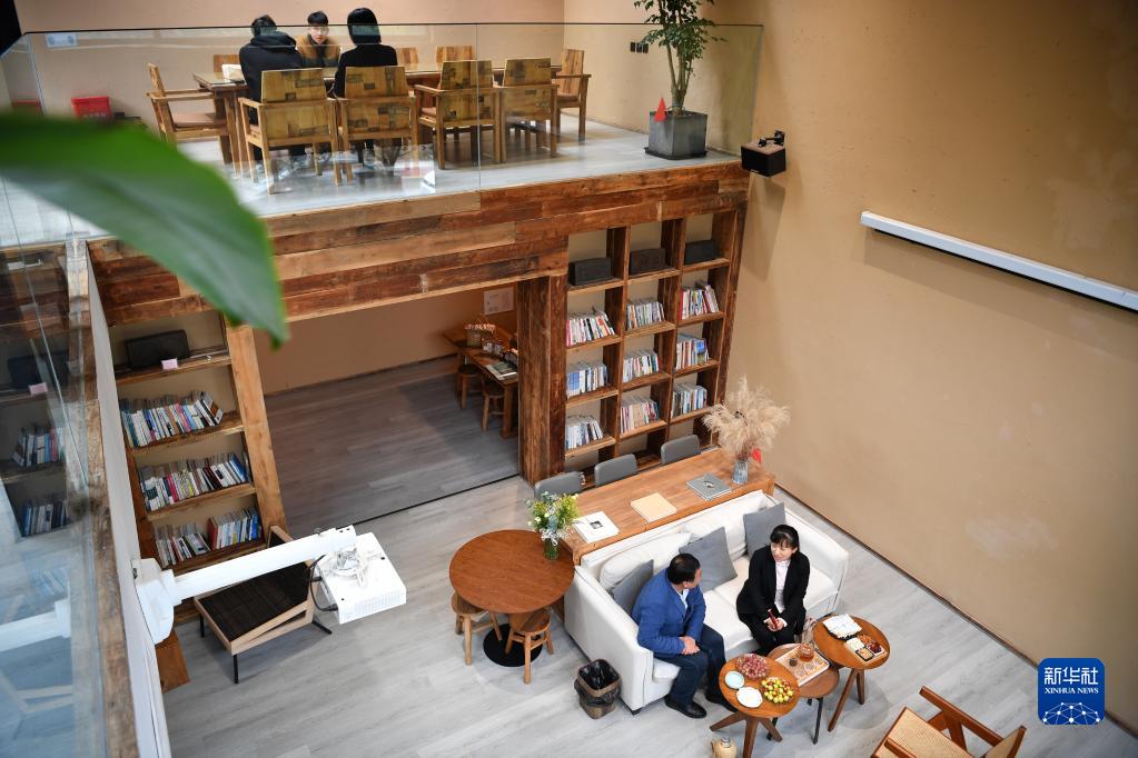 游客在秦岭北麓的西安市长安区抱龙村一家民宿的会客厅内休息(10月13日摄)。
