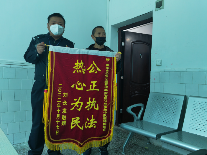 被判全责后,他给贵阳交警送来锦旗