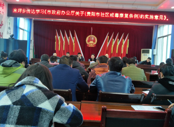 米坪乡传达学习《市政府办公厅关于〈贵阳市社区戒毒康复条例〉的实施意见》