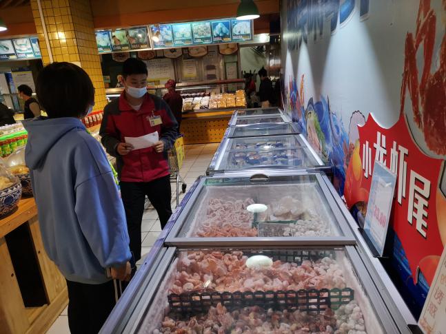 10月12日,花溪区市场监管局对辖区内合力超市、星力超市、沃尔玛等大型商超及农贸市场开展了双随机检查。