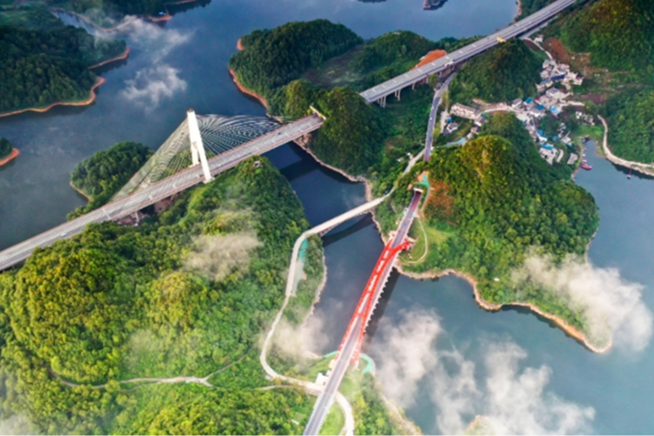 春日的红枫湖,碧波荡漾,岸边的蓝白小寨民居错落有致,与湖光山色融为一体。