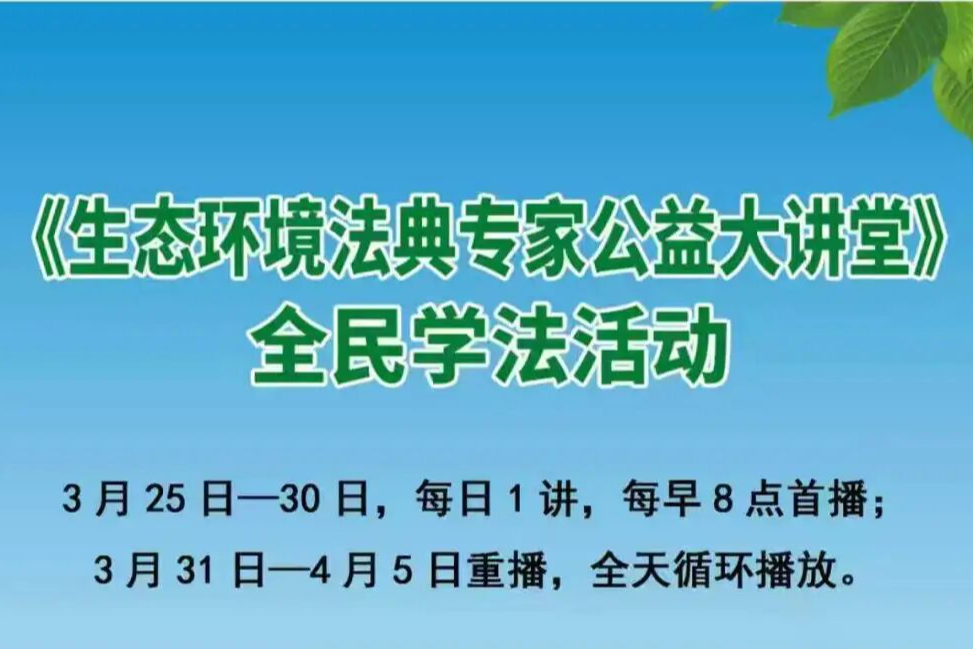 贵州省生态环境厅定于2026年3月25日至3月30日,举办“生态环境法典专家公益大讲堂”线上学法活动。