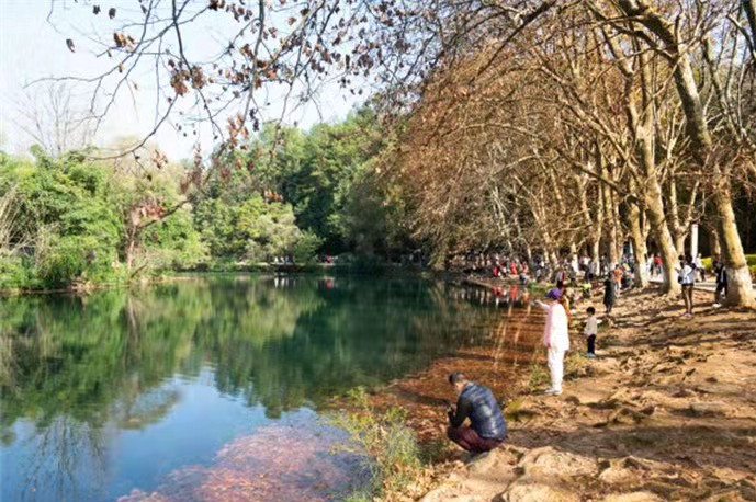 11月8日,天气晴朗,阳光明媚。趁着暖阳,不少市民朋友纷纷走出户外,来到位于贵州省贵阳市花溪区国家城市湿地公园的“黄金大道”亲近自然,享受初冬的阳光。沿着花溪河,散步在梧桐步道上,好不惬意。