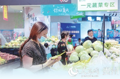 贵阳合力惠民生鲜超市花果园S区店,市民正在挑选蔬菜。 李 宇摄