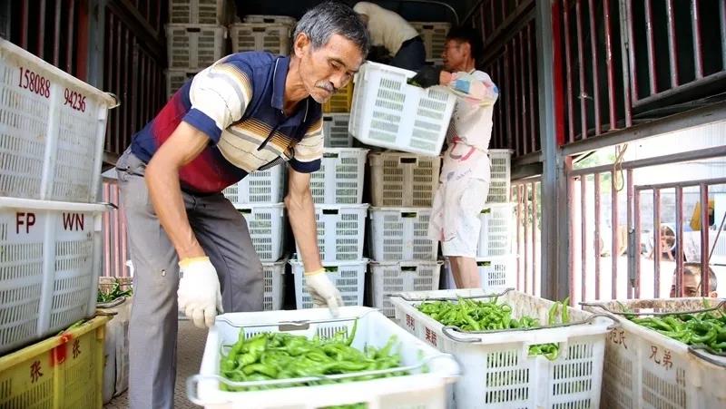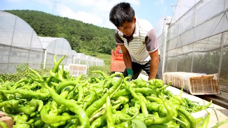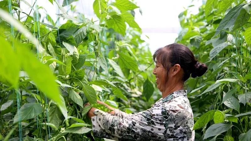 近日,在位于修文县小箐镇大兴村的贵阳市2.5万亩高标准蔬菜保供基地修文园区芦茅寨片区蔬菜大棚内,一个个翠绿的辣椒挂满枝头,村民们正井然有序地进行采摘、装运。