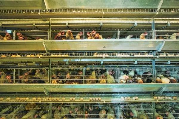 在蛋鸡养殖区,所有鸡笼都采用标准化建设,每栋蛋鸡舍共4组鸡笼,每组鸡笼上下8层,每层鸡舍含53架鸡笼,每架鸡笼长1.8米、宽1.5米。“我们对蛋鸡的喂养也是高标准的,每天早上6点就通过自动化喂养车开始喂养,之后每次喂食和喂水都有严格的时间和量的控制。你看,我们的蛋鸡粪便都是通过传送带及时运输到粪污处理区,经过加工后变成有机肥,鸡舍里基本上没什么异味。”郑群领说。