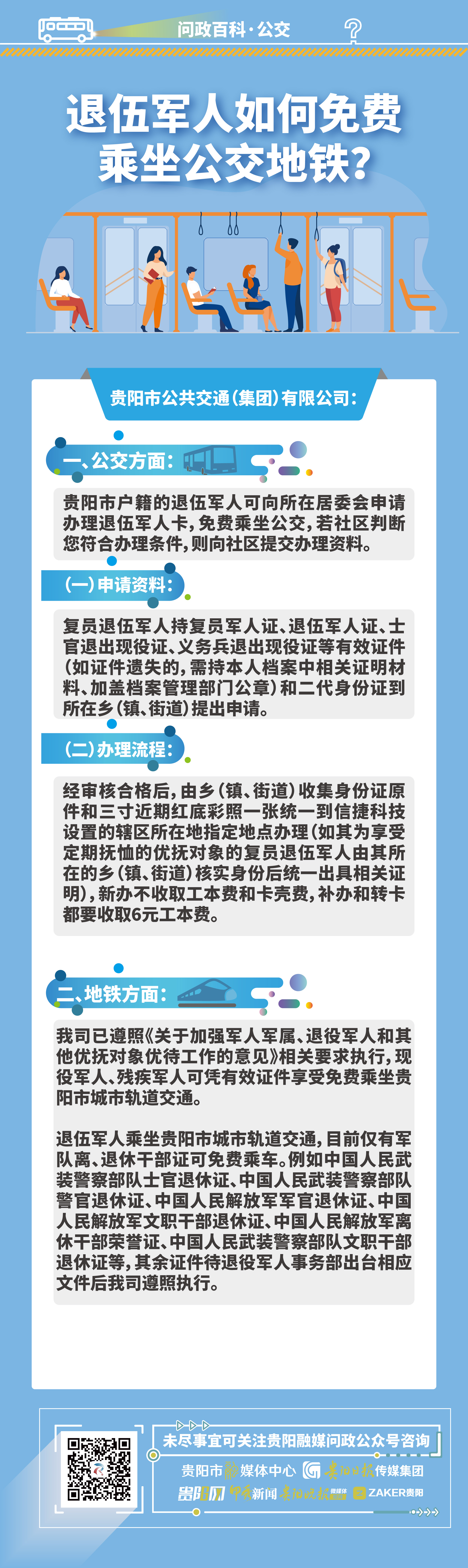 在贵阳市退伍军人如何免费乘坐公交地铁?丨问政百科