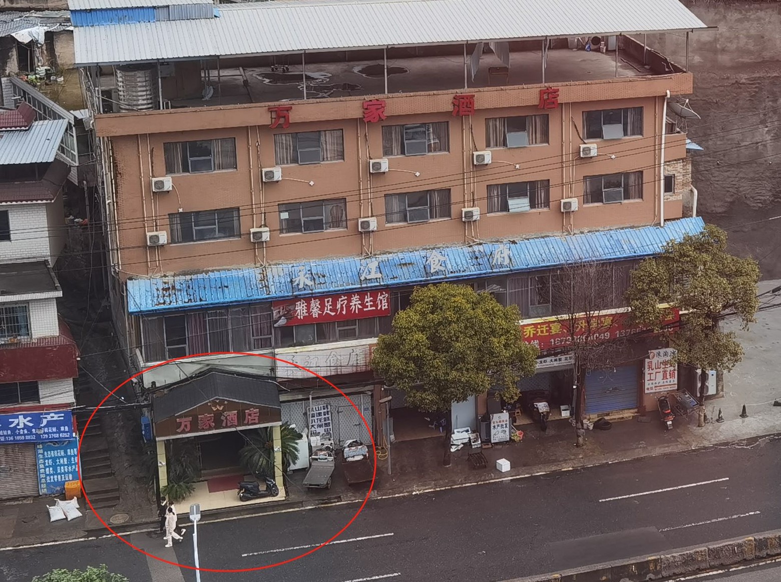 手机尾号9**7的市民:南明区富源中路万家酒店占用了整个人行道,行人必须借道车行道才能通行,损坏城市面貌的同时也存在极大安全隐患,希望有关部门及时处理。