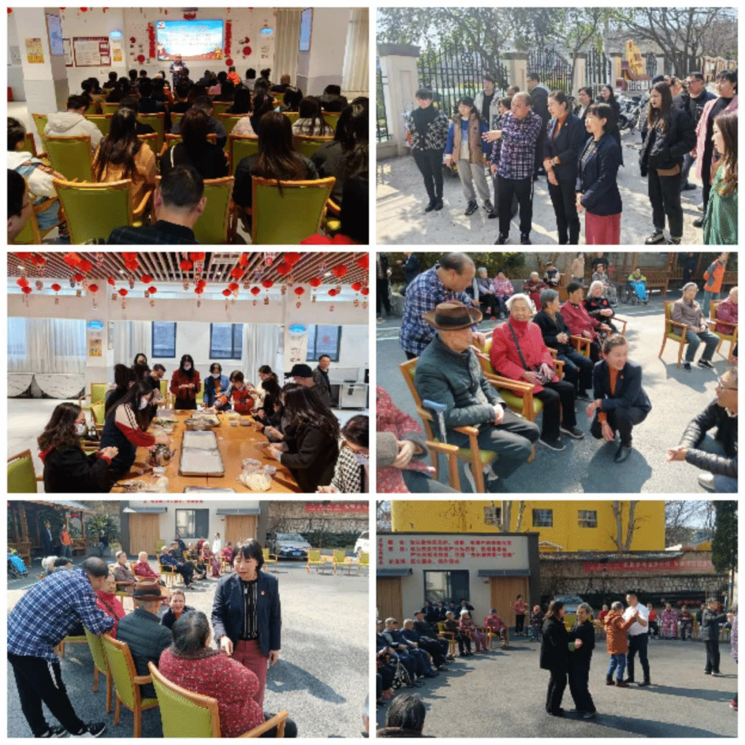 随后,大家进行志愿服务,拿着抹布、扫把等工具美化院内环境;拿着梳子为长者梳头,蹲下身子与长者畅谈,拿着麦克风为长者高歌;包饺子为老年助餐等。