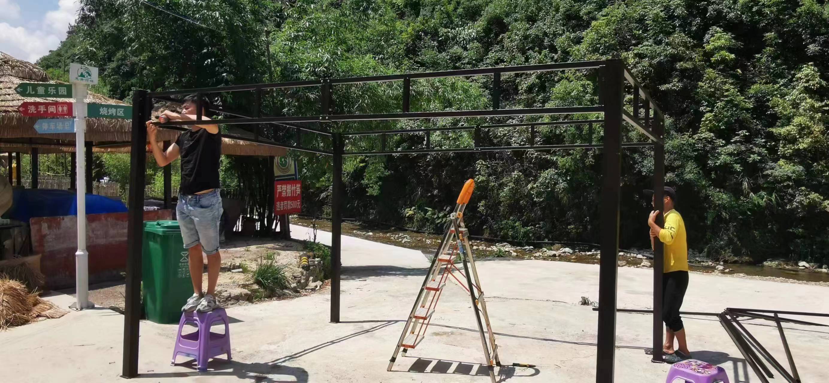 乌当区拆除白水河烧烤棚。