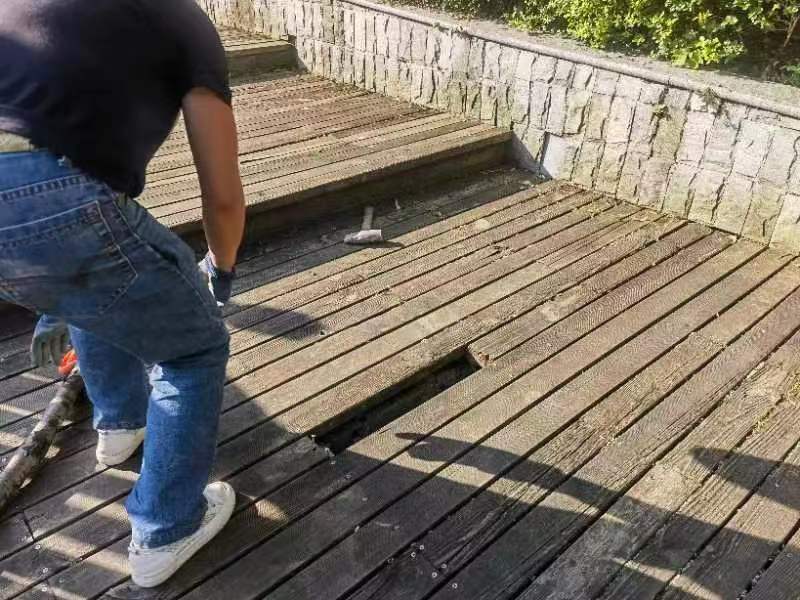 开阳县启钤广场损坏的木栈道得到修复。
