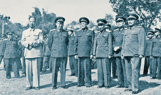 1959年10月,彭真、罗荣桓、刘伯承、林彪、叶剑英、贺龙(前排左起)等在一起