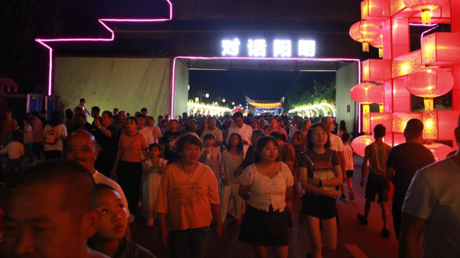 双节假期,修文县在中国阳明文化园景区举办“穿越五千年 华夏文明魂”灯会激光秀,接待游客约17万人次。