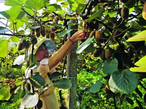 9月15日,游客在修文县龙场镇程关村的猕猴桃产业园采摘。