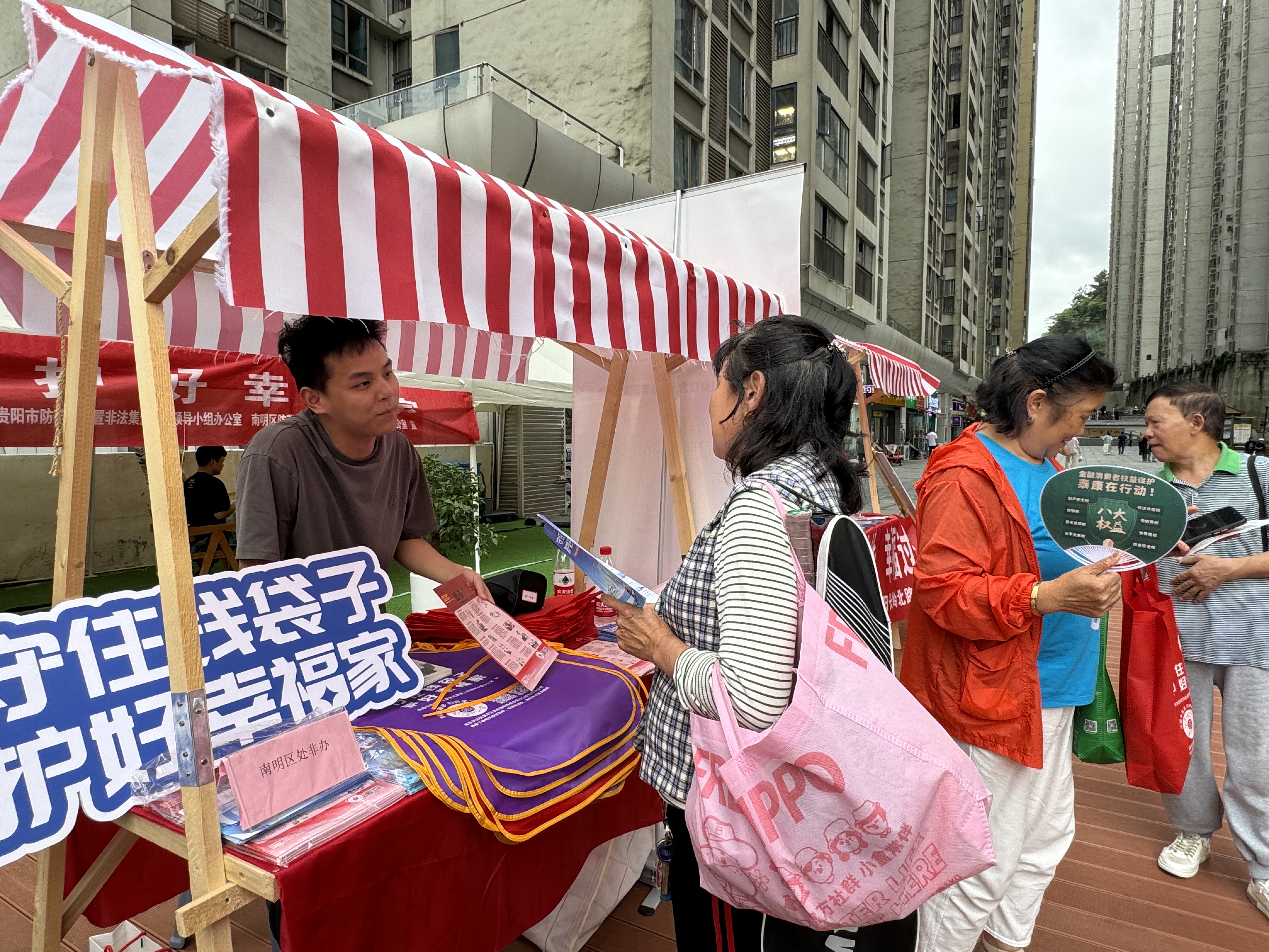 本次活动在省委金融办的指导下,由贵阳市委金融办组织开展,南明区财政局、南明区市场监督管理局、兰花都街道办事处及部分在筑金融机构参与。活动紧扣“守住钱袋子 护好幸福家”宣传主题,现场宣传员通过讲解宣传展板、发放宣传资料以及介绍典型案例、现场答疑解惑等方式,向群众讲解非法集资犯罪的主要表现形式、常见套路和手段,生动揭示了非法集资的欺骗性、风险性和社会危害性,引导广大群众,特别是老年群体。在日常生活中提高警惕,增强自我保护意识,树立正确投资理念,拒绝高息诱惑,严防非法集资陷阱。
