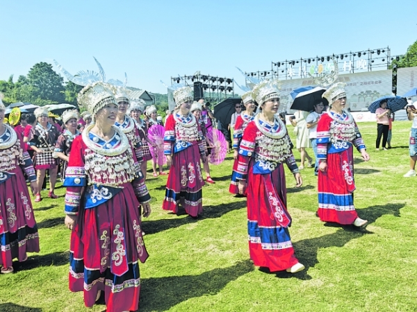 村民身着苗族盛装参加开市巡游。记者 帅弋 蔡捷 摄