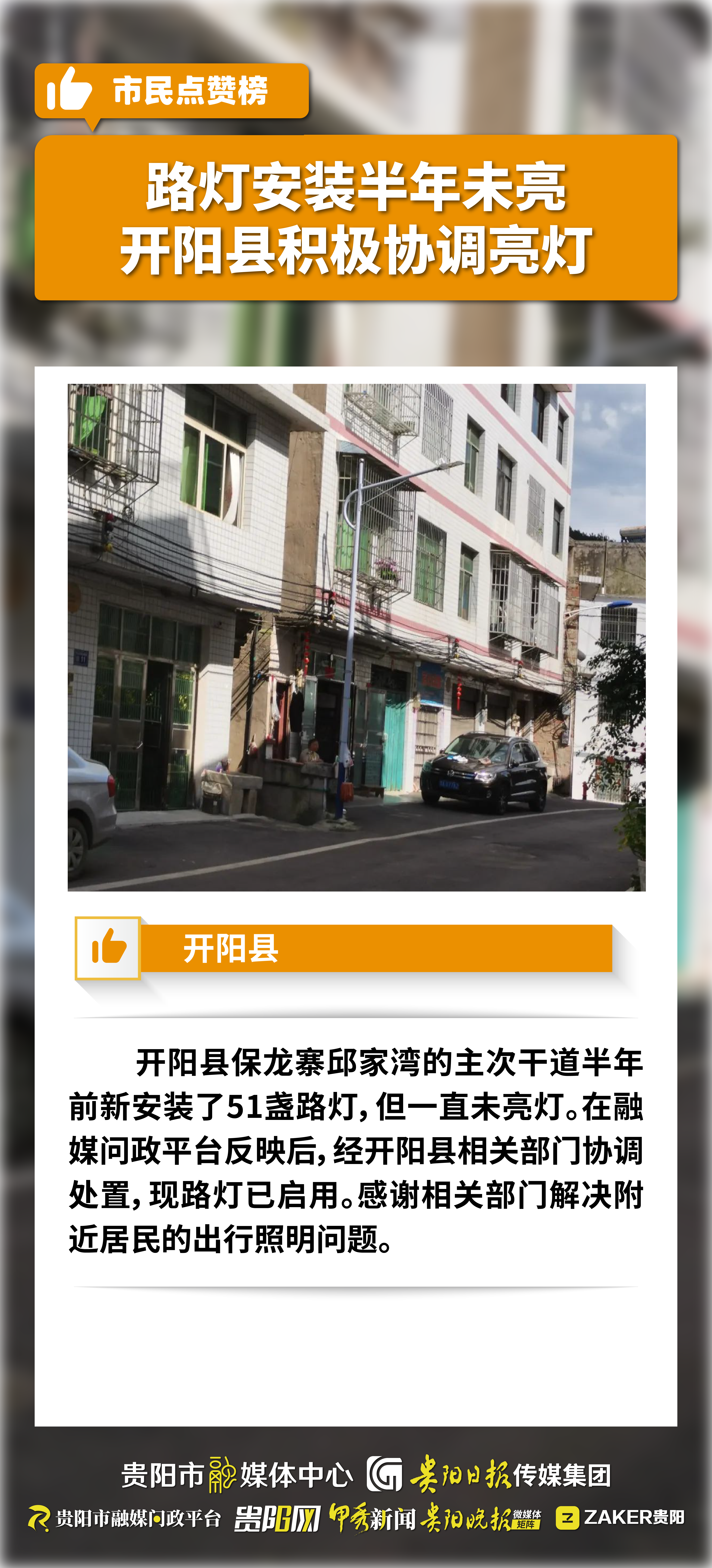 暖民心!路灯安装半年未亮,开阳县积极协调亮灯