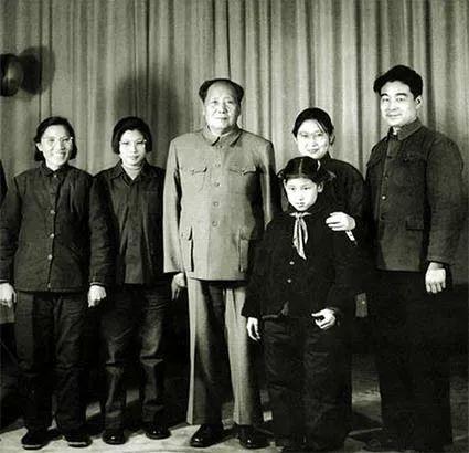 左起:毛远志(前为毛远志之女)、王海容、毛泽东、李敏、孔令华