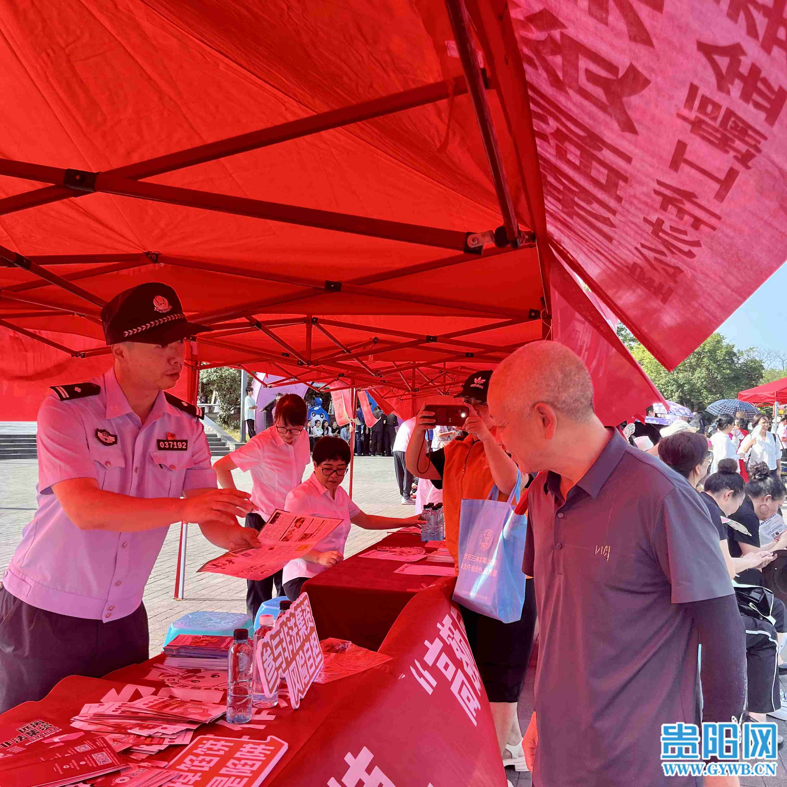 在花溪公园门口,醒目的宣传标语和展板引人注目,贵阳市委金融办,花溪区财政局、公安局、市场监管局、溪北街道,贵阳银行工作人员通过发放宣传资料、现场讲解等方式,向群众普及非法集资的定义、特征、表现形式以及如何防范等知识。讲解过程中,工作人员结合实际案例,深入浅出地分析非法集资的典型套路,让群众更加深刻地了解非法集资的危害。