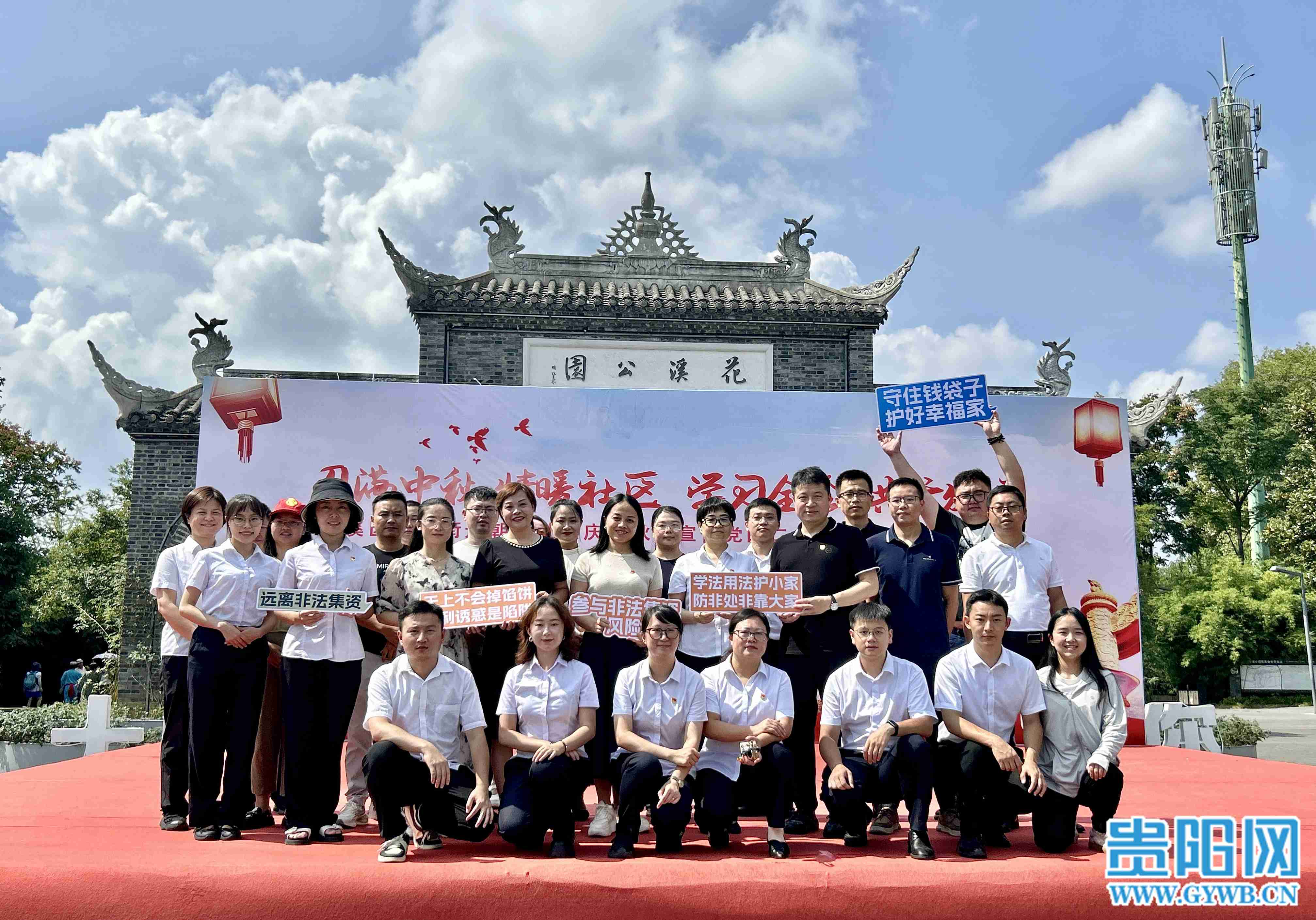 贵阳网·甲秀新闻讯 9月14日,“月满中秋 情暖朝阳”中秋活动在贵阳市花溪公园举办。活动不仅进行了中秋文艺表演、党的二十届三中全会精神宣讲,还进行了防范和处置非法集资宣传。