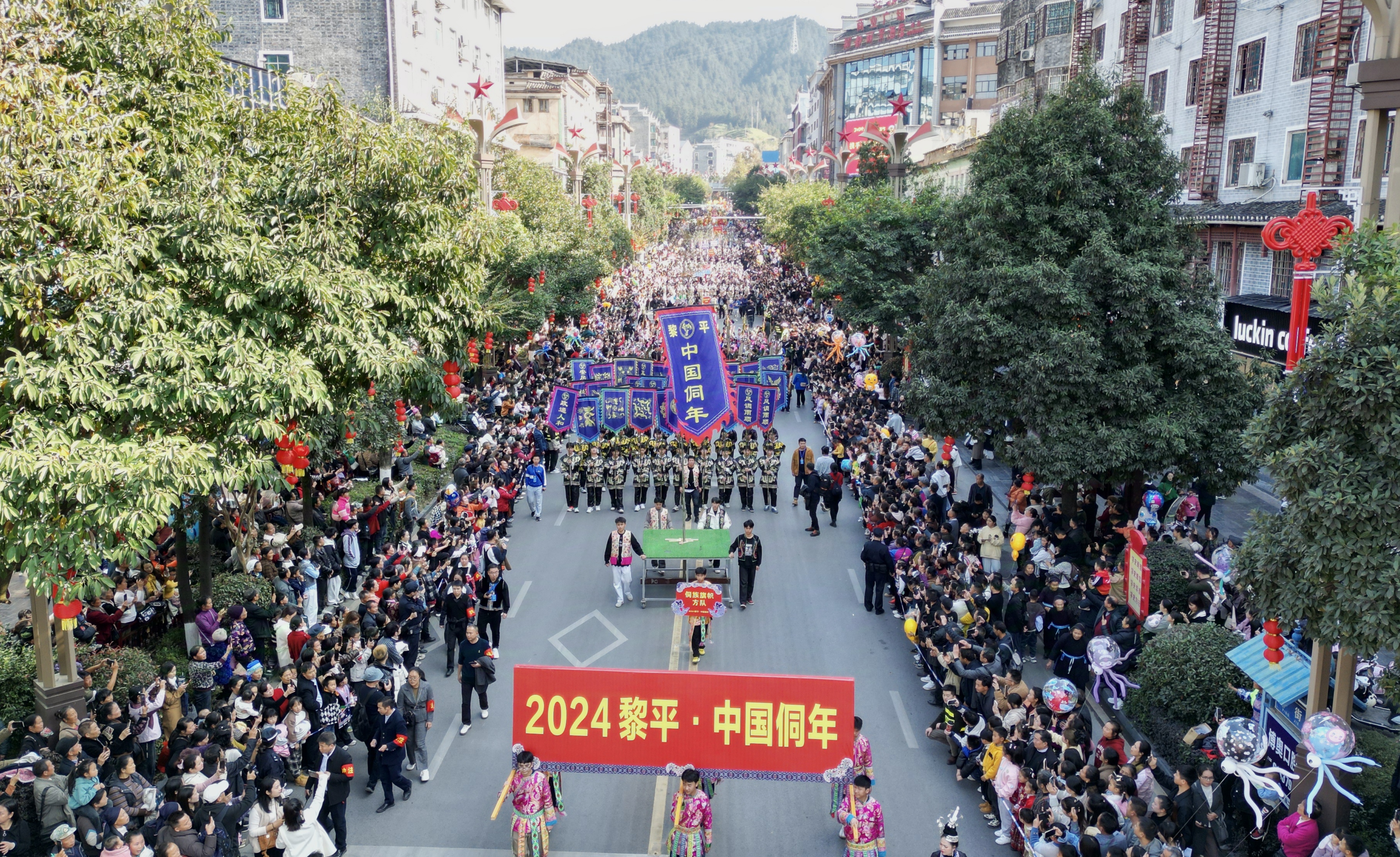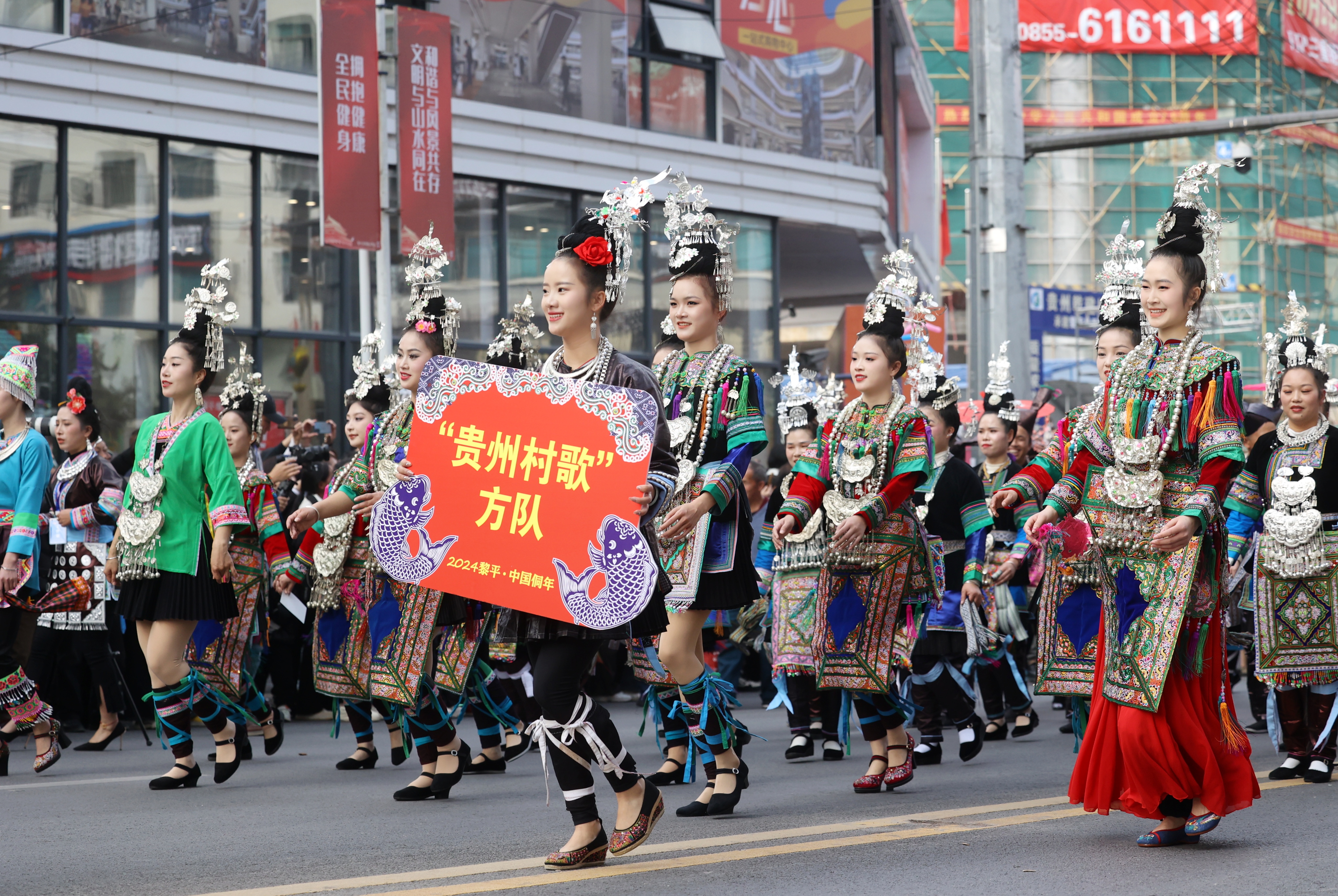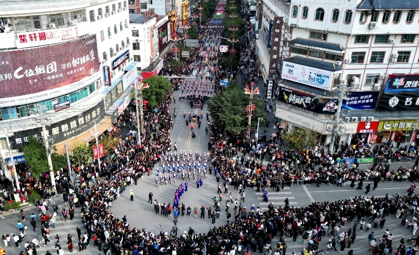 贵阳网·甲秀新闻讯 12月1日下午,2024黎平·中国侗年——“携手奋进新征程·民族团结大巡游”活动在黎平县城举行。来自黔、湘、桂、鄂四省区侗族群众代表以及苗、瑶等各族群众近7000人,身穿盛装,聚集侗乡黎平开展民族团结大巡游活动,形成一道绚丽多彩的风景线,展示了独特的民族文化,体现了各民族团结奋进、相互促进、融合发展盛况。