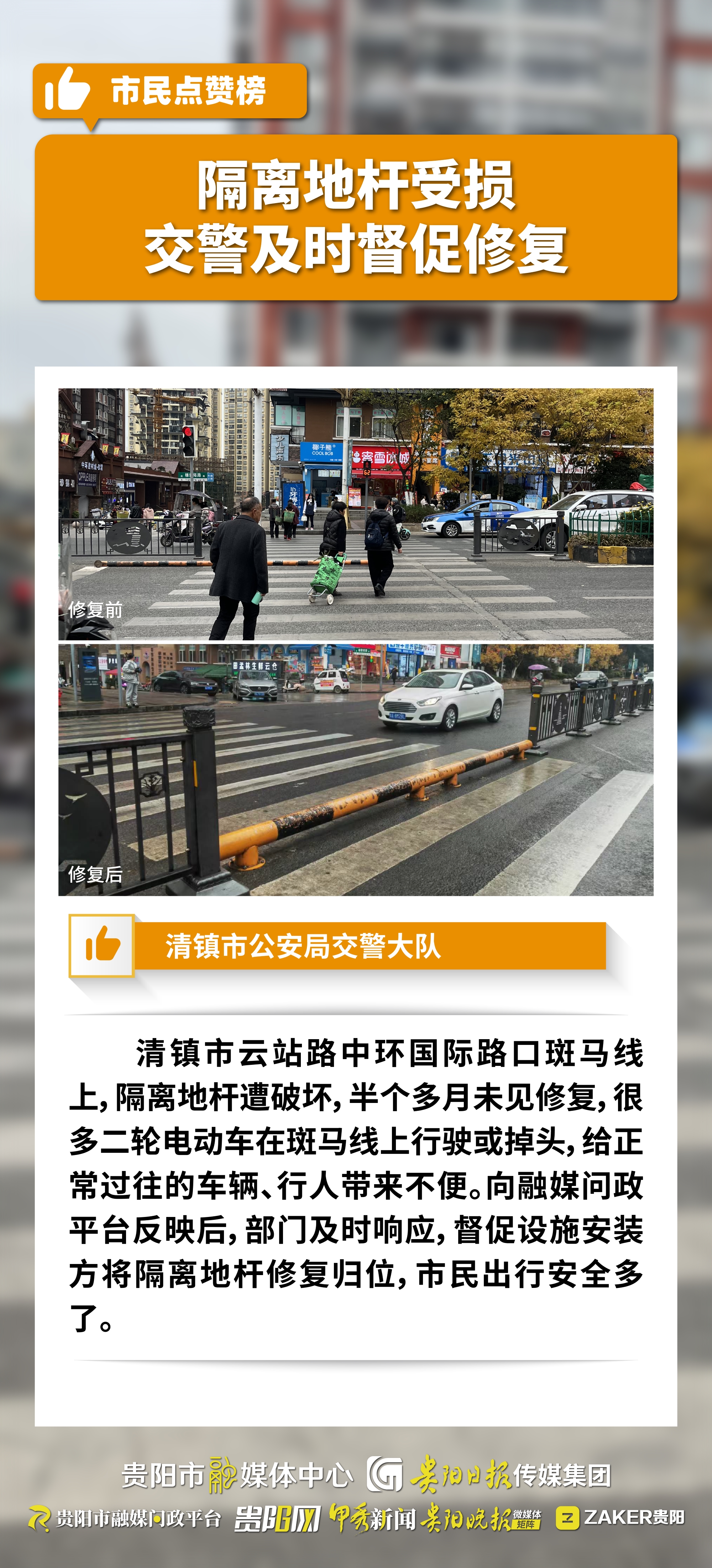 隔离受损有隐患?交管督促修复
