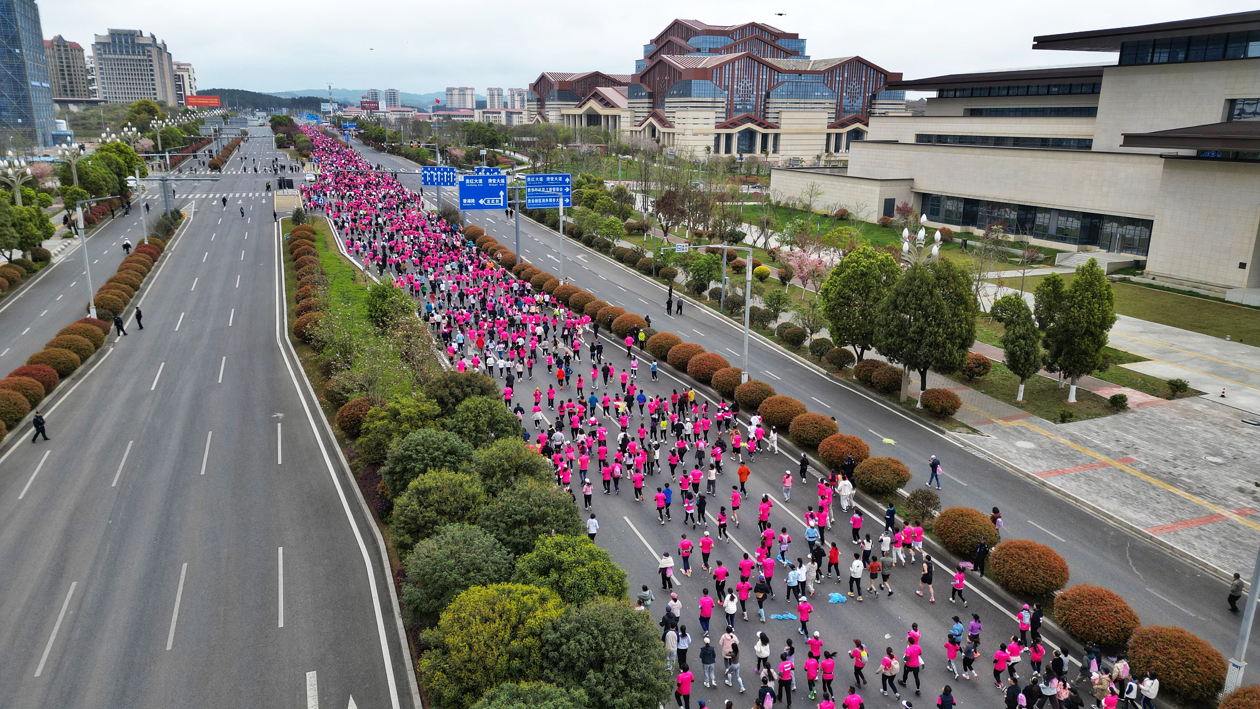 俯瞰“奔跑贵阳·2025贵阳贵安樱花半程马拉松赛”现场。