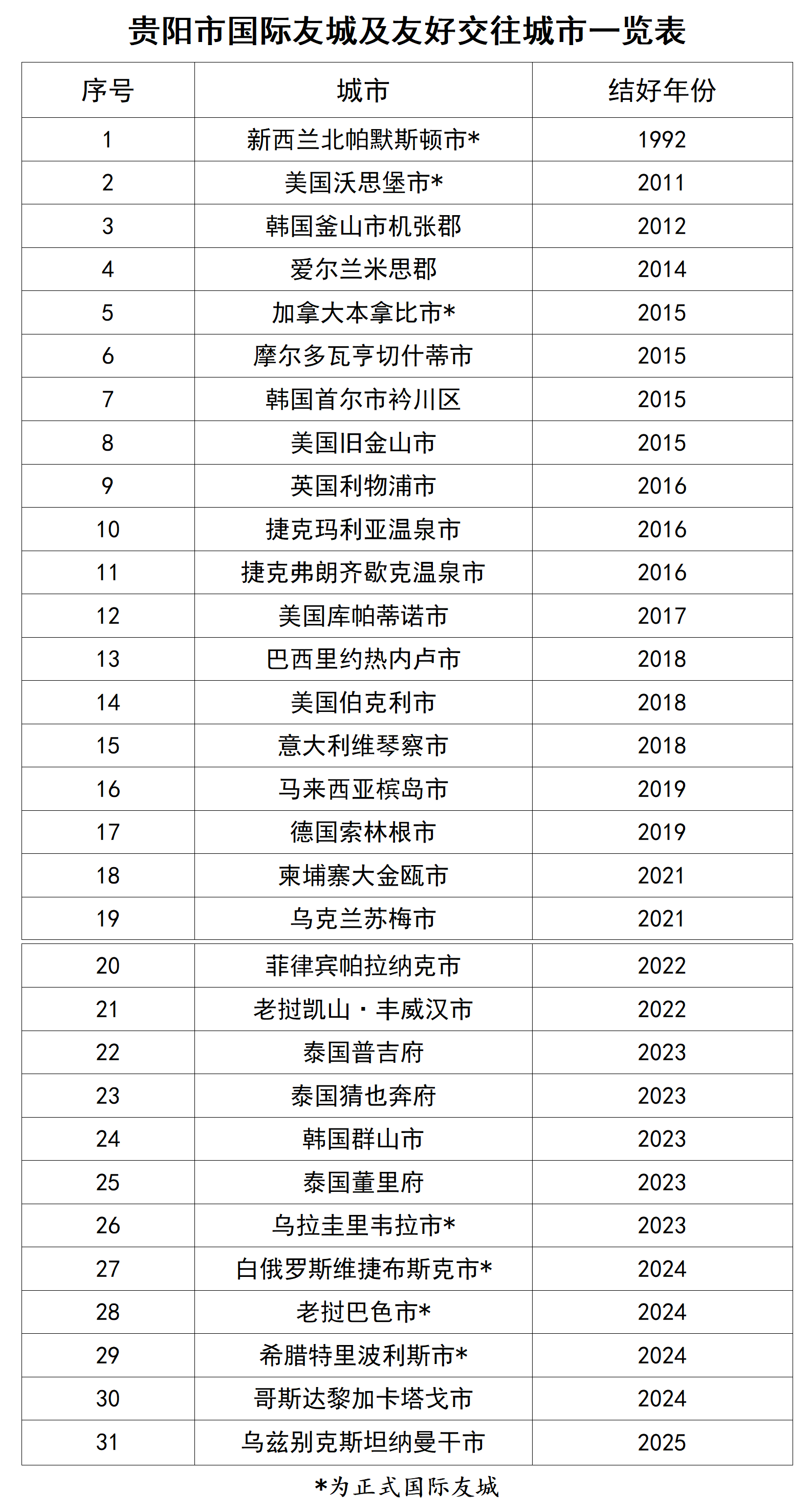 贵阳网•甲秀新闻讯 4月8日,贵阳市与乌兹别克斯坦纳曼干市签署建立友好城市关系意向书,友城友好交往城市又添一员。截至目前,贵阳市国际友好城市及友好交往城市已达31个。