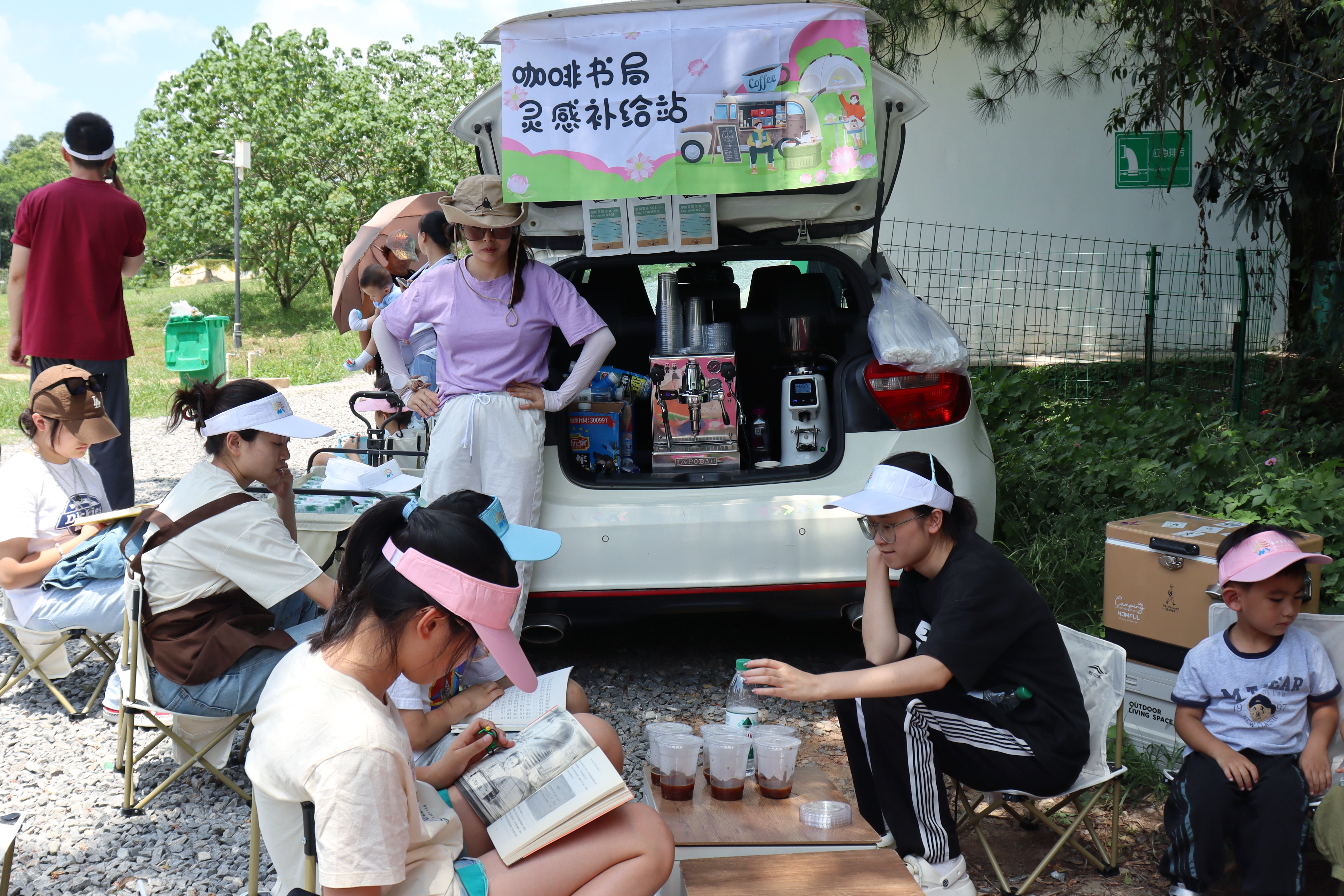 参与活动的家庭在“咖啡书局灵感补给站”看书、品咖啡
