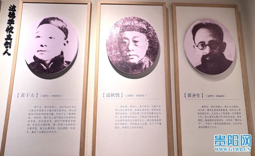 1901年,黄干夫、凌秋鹗、贾一民等30余人在忠烈宫成立算学馆,这是贵州最早研究自然科学的团体。两年后,算学馆扩大为达德书社。到1904年,达德书社创办民立小学堂,成为贵州私立学校的开端。之后学校不断发展,1912年正式定名为达德学校。