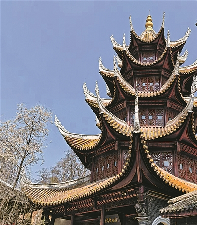 修缮后开放的大觉精舍“修建如旧”:中心建筑五层佛阁坐东向西,八角翘檐层层上涌,高凌霄汉,南、北厢房对称相配,西面藏经楼曲栏四周,一派古风;又“活化利用”,北厢房设“文通书局”和“茶舍”,南厢房为新引入的本土非遗设计品集合店,汇聚了数十个有志于非遗传承与文化复兴的艺术家与设计师品牌,常售产品超过1000件,一脉文风。