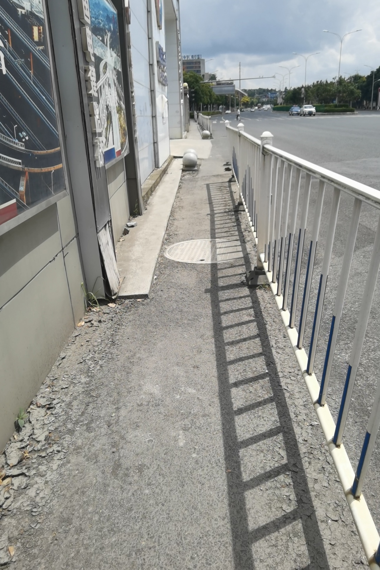 7月29日,“融媒+督查”工作组现场走访看到,该段长约100米、宽约8米的人行道被工地大门及围挡完全阻断。虽然在相邻的车行道上,留有约1.2米宽的通行便道,但空间较为局促,仅够两人并肩通行。