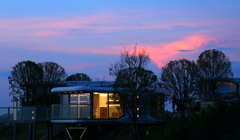 “太空舱采用航天器同款高强度玻璃,270°无遮挡视野,实测夜晚星空能见度十分高,能让游客沉浸式体验‘卧观星云、牧云阅山’。”该民宿相关负责人郭磊介绍,太空舱内空调、洗手间、洗漱台一应俱全,所使用的物品,都是对标星级酒店标准,极大提升了露营品质。