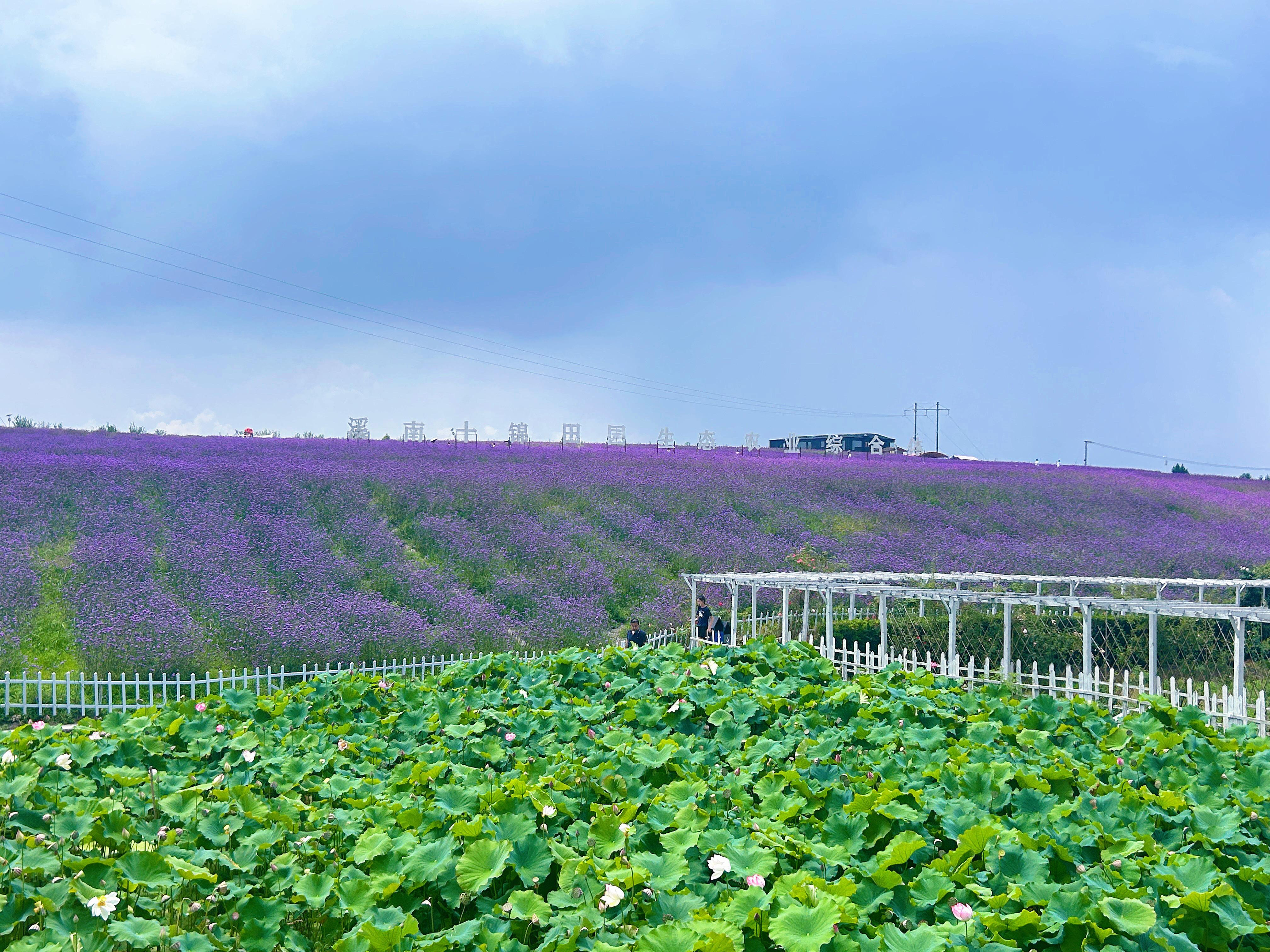 360亩紫色的马鞭草随风摇曳,点缀其间的荷花、格桑花与花海中的彩色风车、天幕、凉亭相映成趣,远处青山如黛,与山脚下的民居相呼应,共同构成一幅唯美的风景画,吸引四面八方的游客纷至沓来……这是位于1500米海拔之上、年均气温14摄氏度的花溪区高坡乡石门锦绣田园景区的其中一个场景。